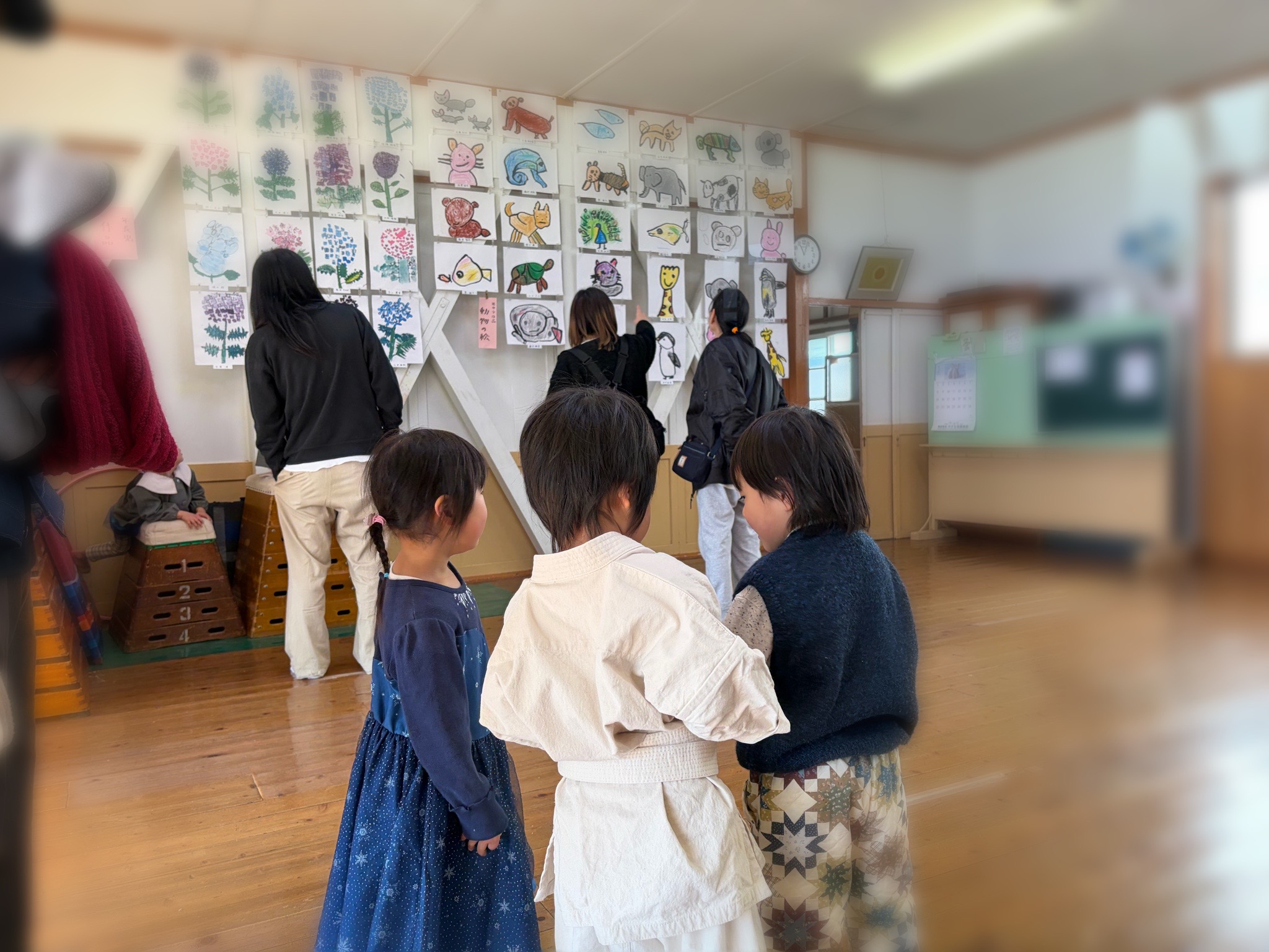 年中さんやつぼみさんの作品を見ながら